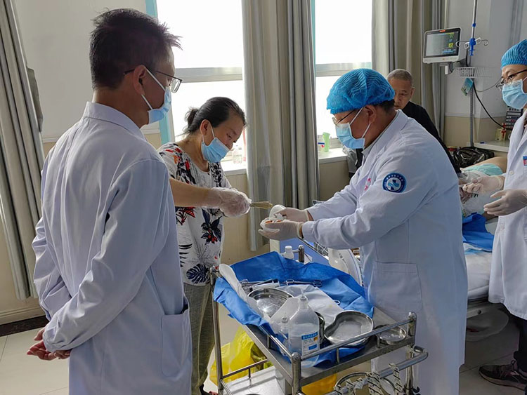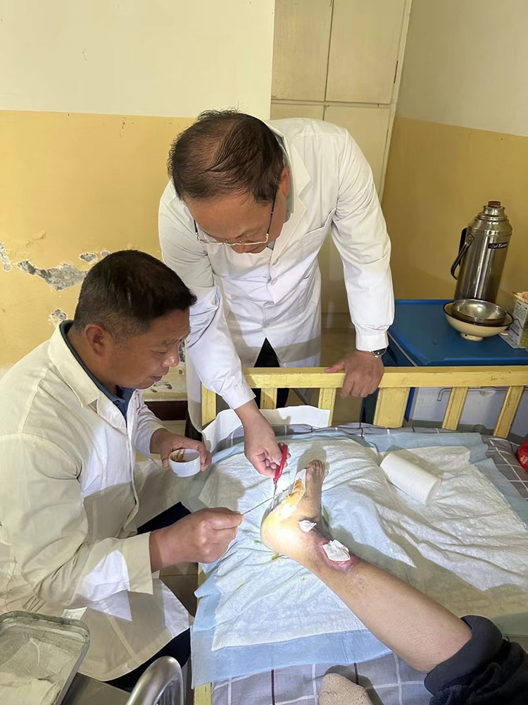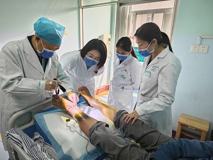 2024年4月15日,《中國燒傷創(chuàng)瘍雜志》常務(wù)編委、燒傷創(chuàng)瘍再生醫(yī)療技術(shù)臨床專家趙瑞慶,應(yīng)高平市人民醫(yī)院、高平市燒傷專科醫(yī)院邀請,分別會診一例肛周膿腫感染、深筋膜廣泛感染重癥患者,三例燒傷,一例壓瘡患者,趙教授演示規(guī)范操作再生醫(yī)療技術(shù)換藥,得到了醫(yī)護人員和家屬的一致好評。