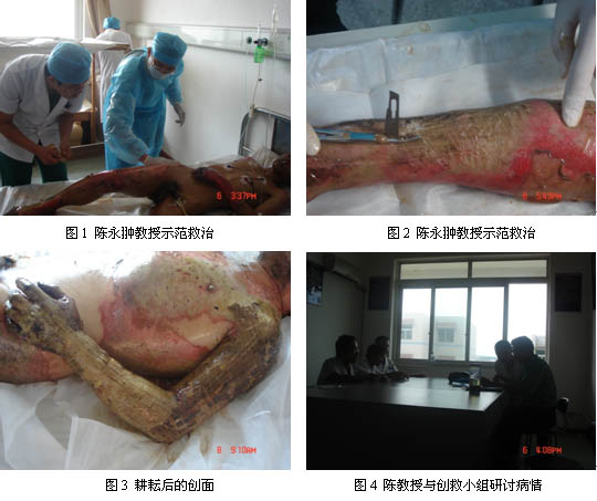 2007年6月5日貴州省安順市基地醫(yī)院收治了四名大面積重度燒傷病人,由于病情嚴重,情況緊急,該院立即通知了中國中西醫(yī)結(jié)合學(xué)會燒傷專業(yè)委員會陳永翀教授,陳教授聞之情況后,于第二天就從北京趕到了該院,到達該院后陳教授立即投入到了搶救的工作中去了。