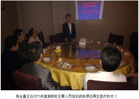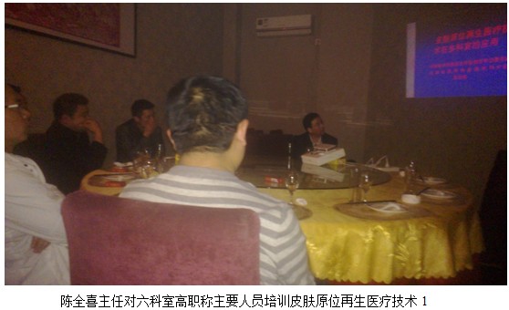 黃河三門(mén)峽醫(yī)院在三個(gè)月前已進(jìn)行過(guò)一次皮膚原位再生培訓(xùn)。通過(guò)三個(gè)月的臨床應(yīng)用,遇到了一些臨床棘手病人,特邀請(qǐng)陳全喜主任再次進(jìn)行皮膚原位再生醫(yī)療技術(shù)培訓(xùn)。下午3點(diǎn),在黃河迎賓大酒店舉辦了六科室主任、護(hù)士長(zhǎng)的高職稱科主要人員學(xué)習(xí)培訓(xùn)班(產(chǎn)科、骨科一、骨科二、泌尿外科、心胸外科,普外科。)