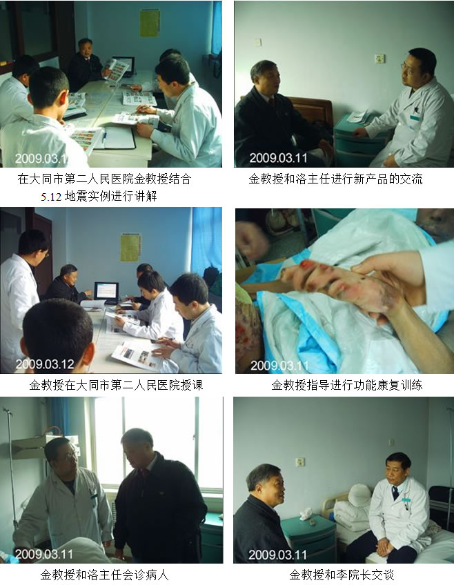 大同市地理位置十分重要,素有“北方鎖鑰”之稱,是我國(guó)中西部與東部連接線,是內(nèi)蒙古通往山西的咽喉,也是北京和華北平原的側(cè)背。這種獨(dú)特的區(qū)位優(yōu)勢(shì),使大同成為中國(guó)中西部交匯處的一個(gè)具有多功能的區(qū)域性中心城市,2009年3月11日,金黨軍教授應(yīng)大同市第二人民醫(yī)院外科主任洛強(qiáng)的邀請(qǐng)來到了這里。地處大同市操場(chǎng)城街的大同市第二人民醫(yī)院是一家二甲醫(yī)院擁有床位400多張,醫(yī)護(hù)人員600余人,其中專業(yè)技術(shù)人員500多人,高級(jí)職稱專家80多人,臨床科室45個(gè)重點(diǎn)學(xué)科,達(dá)明眼科中心、骨科、愛心婦產(chǎn)中心、普外科、血液凈化中心、口腔中心、腦外科、神經(jīng)內(nèi)科、消化內(nèi)鏡中心、泌尿外科、呼吸內(nèi)科、心血管內(nèi)科、內(nèi)分泌科、整形燒傷外科、肛腸外科、針灸理療科、藥氧中心等均為大同市領(lǐng)先學(xué)科。 金教授到來后,首先向洛主任和其他醫(yī)護(hù)人員詳細(xì)了解病人在入院期間用藥和治療的詳細(xì)情況,并對(duì)他們提出的問題進(jìn)行了詳細(xì)的解答。其后對(duì)病人的治療方案同洛主任進(jìn)行了詳細(xì)的安排,金教授囑咐一定要嚴(yán)格按照皮膚器官原位再生復(fù)原技術(shù)的要領(lǐng)來為患者進(jìn)行治療。之后金教授與剛剛打完點(diǎn)滴的李院長(zhǎng)就皮膚器官原位再生復(fù)原技術(shù)的新產(chǎn)品速愈貼在臨床應(yīng)用知識(shí)進(jìn)行了探討,并就速愈貼在其它醫(yī)院已經(jīng)取得的實(shí)際臨床效果進(jìn)行了一系列展示,同時(shí)結(jié)合現(xiàn)在醫(yī)院的實(shí)際病例如何運(yùn)用皮膚器官原位再生復(fù)原技術(shù)后取得的效果進(jìn)行了長(zhǎng)時(shí)間的交流。一席長(zhǎng)談過后,李院長(zhǎng)對(duì)速愈貼產(chǎn)生了濃厚的興趣。