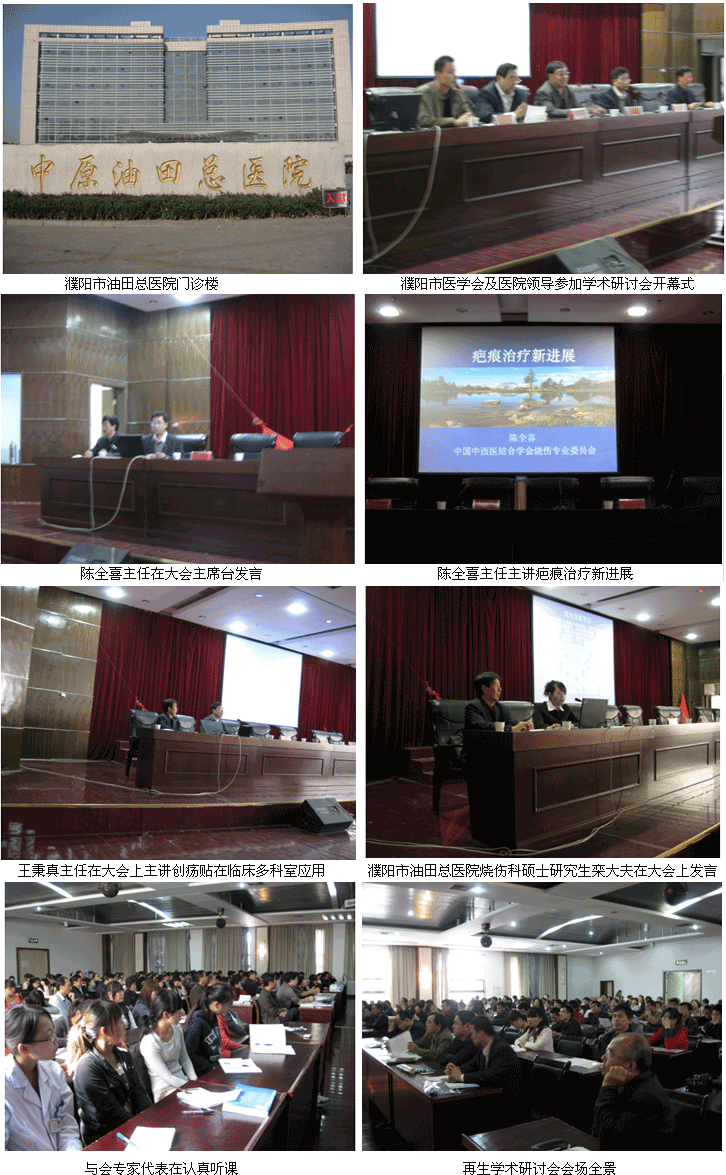 2010年10月16日,我國(guó)著名生命科學(xué)家徐榮祥教授創(chuàng)立的再生醫(yī)療新技術(shù)學(xué)術(shù)研討會(huì)在河南省濮陽(yáng)市油田總醫(yī)院勝利召開(kāi),上午8點(diǎn)30分,濮陽(yáng)市油田總醫(yī)院醫(yī)療處處長(zhǎng)耿長(zhǎng)雨、濮陽(yáng)市油田總醫(yī)院院長(zhǎng)楊立、市醫(yī)學(xué)會(huì)秘書(shū)長(zhǎng)王長(zhǎng)太,中國(guó)創(chuàng)瘍科技研究所陳全喜教授、河南省中西醫(yī)結(jié)合學(xué)會(huì)燒傷專(zhuān)業(yè)委員會(huì)副主任委員王秉真教授、河南鄭大一附院崔正軍教授、中華醫(yī)學(xué)會(huì)河南燒傷專(zhuān)業(yè)委員會(huì)常委、濮陽(yáng)市油田燒傷科主任醫(yī)師張巨祥等來(lái)自河南的濮陽(yáng)、安陽(yáng)、焦作、等地區(qū)和中原油田十一所醫(yī)院的專(zhuān)家、教授及專(zhuān)業(yè)人員共176人參加了學(xué)術(shù)會(huì)開(kāi)幕式,會(huì)議由張巨祥醫(yī)師。