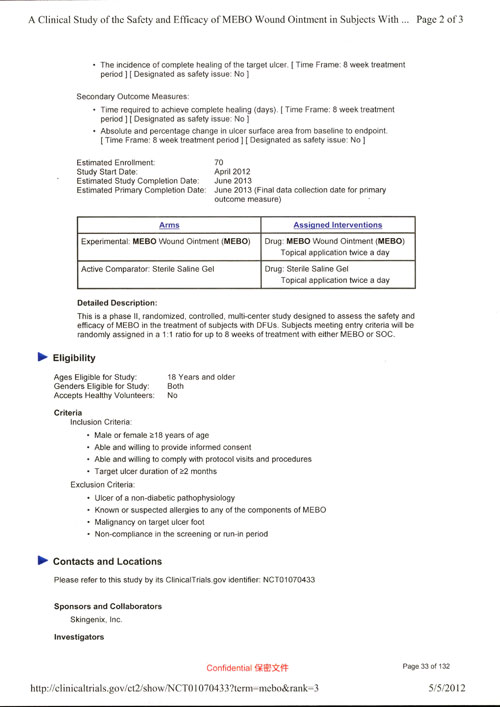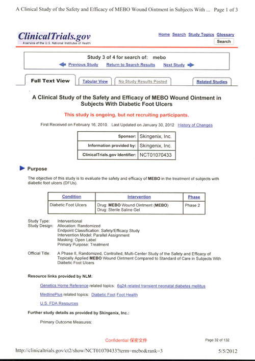 據(jù)悉,面對糖尿病潰瘍這種高發(fā)病率、高截肢率、高病死率及高復(fù)發(fā)率的無藥可醫(yī)的疾病,我國政府SFDA與美國政府FDA近期幾乎同一時間批準(zhǔn)原位再生皮膚技術(shù)的專用藥品美寶濕潤燒傷膏(MEBO)作為糖尿病潰瘍專用藥進行臨床研究。這也是美國FDA批準(zhǔn)的第一個全植物營養(yǎng)成分的藥品臨床研究。