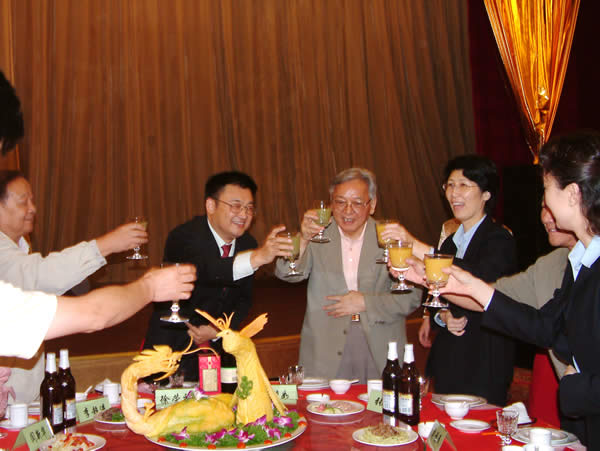 晚上,集團為慶祝8.16集團日和集團喬遷之喜,在華都大飯店舉行了盛大的慶祝酒會,并邀請了原外國專家局局長馬俊如、原衛(wèi)生部藥監(jiān)局局長李超進、原衛(wèi)生部藥監(jiān)局副局長粟福民、中新社副總編夏春平、科技日報副總編閻新華等幾位嘉賓到會,會前徐總發(fā)表了簡短的講話,并誠摯感謝了在燒傷皮膚再生技術發(fā)展過程中給予支持和幫助的幾位老領導。幾位領導和嘉賓也發(fā)表了精彩的感言,大家紛紛贊揚了徐總所取得的驕人成果和高尚的人格魅力,并堅信美寶集團在以人類健康為宗旨的發(fā)展道路上會越走越遠。酒會在熱鬧祥和的氣氛中進行。