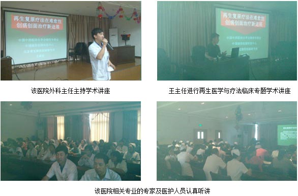 當(dāng)日下午3點(diǎn),培訓(xùn)活動(dòng)準(zhǔn)時(shí)在該醫(yī)院多功能會(huì)議廳舉行,該醫(yī)院外科主任主持了學(xué)術(shù)講座,在學(xué)術(shù)講座中王主任首先向與會(huì)醫(yī)護(hù)人員介紹了我國(guó)著名生命科學(xué)家、醫(yī)學(xué)家徐榮祥教授在人體再生復(fù)原科學(xué)領(lǐng)域取得的實(shí)驗(yàn)及臨床研究最新進(jìn)展,在2010年年底公布的“人體生命延續(xù)之謎(二)——線粒體主導(dǎo)日常生命”,破解了“精、氣、神、力”旺盛與人體啟動(dòng)了再生生命程序有關(guān),與細(xì)胞內(nèi)各主要細(xì)胞器功能的發(fā)揮有關(guān),并進(jìn)一步證實(shí)了一個(gè)生命體可以同時(shí)具有“基本生命”和“再生生命”等,然后結(jié)合了大量的臨床病例圖片,主要針對(duì)不同深度的燒傷創(chuàng)面及各類難愈性創(chuàng)傷、潰瘍創(chuàng)面的規(guī)范化處理方法與技巧、注意事項(xiàng)及其各種原因引起的骨外露的治療方案等進(jìn)行了細(xì)致地講解,并向?qū)W員展示了骨科創(chuàng)瘍創(chuàng)面清創(chuàng)、骨髓開(kāi)窗術(shù)、糖尿病足合并壞死性筋膜炎早期清創(chuàng)術(shù)、微粒皮種植術(shù)等創(chuàng)面規(guī)范處理示范錄像資料,并且詳細(xì)解答了醫(yī)護(hù)人員提出的各種提問(wèn)。學(xué)術(shù)講座一直持續(xù)到當(dāng)日下午18:00才結(jié)束。講座中與會(huì)人員認(rèn)真聽(tīng)講,學(xué)習(xí)氣氛濃厚,達(dá)到了進(jìn)一步推廣皮膚再生復(fù)原療法臨床應(yīng)用的目的。