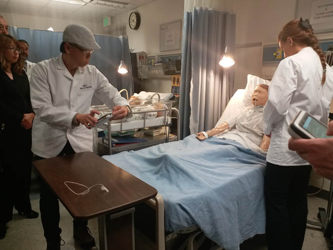 儀式結(jié)束后,大家一同參觀了洛杉磯州大徐榮祥健康與公共事業(yè)服務(wù)大學(xué)護(hù)理模擬實(shí)驗(yàn)室等。