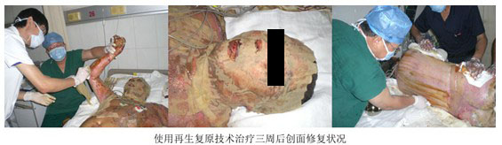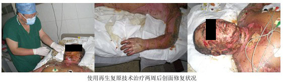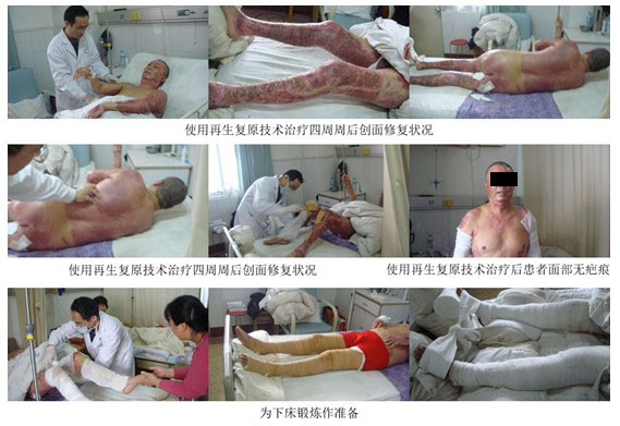 煙臺(tái)山醫(yī)院使用再生復(fù)原技術(shù)治療大面積燒傷病人剪影