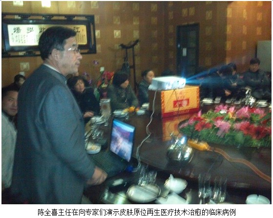 2012年11月4日,中國中西醫(yī)結合學會燒傷專業(yè)委員會、北京美寶燒傷創(chuàng)瘍研究所臨床部專家陳全喜和河南技術推廣責任人賀杰鋒應邀來到了商丘市寧陵縣。下午5點對寧陵縣人民醫(yī)院外科,中醫(yī)院外科、婦產(chǎn)科,婦幼保健院婦產(chǎn)科二十一位科主任護士長進行皮膚原位再生醫(yī)療技術的培訓。