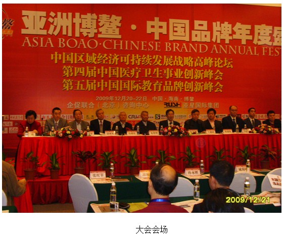 2009年歲末的海南鮮花盛開暖意濃濃,備受矚目的“亞洲博鰲·中國(guó)品牌年度盛典”大型系列活動(dòng)12月20~22日在海南博鰲隆重舉行。中宣部原部長(zhǎng)朱厚澤、全國(guó)工商聯(lián)原副主席桓玉珊、衛(wèi)生部原副部長(zhǎng)孫隆椿、國(guó)家中醫(yī)藥管理局原副局長(zhǎng)褚國(guó)本等領(lǐng)導(dǎo)出席會(huì)議。