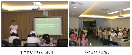 2011年10月17日,中國中西醫(yī)結(jié)合學(xué)會燒傷專業(yè)委員會常委兼秘書、《中國燒傷創(chuàng)瘍雜志》副總編輯、北京美寶燒傷創(chuàng)瘍研究所副所長、第二臨床研究部主任王洪生研究員應(yīng)邀到該院神經(jīng)外科做“再生復(fù)原療法對難愈性創(chuàng)面的治療新進(jìn)展”臨床專題學(xué)術(shù)講座,該科三個病區(qū)的護(hù)士長及全體護(hù)理人員參加了學(xué)術(shù)講座,在學(xué)術(shù)講座中,王主任對各種難愈性創(chuàng)傷、潰瘍創(chuàng)面的規(guī)范處理方法與技巧利用多媒體教學(xué)方式,結(jié)合大量的圖片及錄像資料進(jìn)行了詳細(xì)講解。