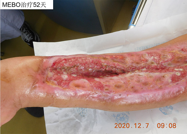患者右上肢被機(jī)器絞傷10天、加重5天后,于10月16 日,來到北京南苑醫(yī)院燒傷創(chuàng)瘍科,當(dāng)時(shí)右上肢廣泛皮膚軟組織絞挫撕脫傷并感染、右側(cè)橈骨中遠(yuǎn)段多發(fā)開放性骨折、右尺骨莖突骨折。北京南苑醫(yī)院燒傷創(chuàng)瘍科采用了燒傷創(chuàng)瘍?cè)偕t(yī)療技術(shù),在原位培養(yǎng)皮膚組織器官再生,并配合微粒皮移植術(shù)以加速創(chuàng)面愈合。這位在外院多家大醫(yī)院均被告知需要截肢的病人在南苑醫(yī)院不僅成功保住了肢體,還恢復(fù)了部分功能并在進(jìn)一步康復(fù)中,已于12月10出院。