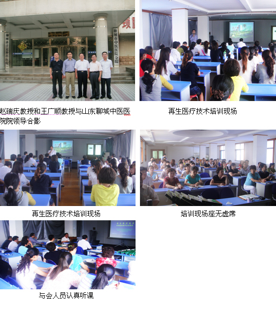 2010年9月11日,中國中西醫(yī)結(jié)合學(xué)會燒傷專業(yè)委員會副主任趙瑞慶教授,燒傷專業(yè)委員會常委王廣順教授應(yīng)山東聊城中醫(yī)醫(yī)院邀請,在聊城辦事處許嫻同志的陪同下,于當(dāng)日下午15:00至18:00在該院多功能會議室對該院的62位醫(yī)護(hù)人員進(jìn)行了燒傷再生醫(yī)學(xué)技術(shù)的院內(nèi)培訓(xùn),培訓(xùn)內(nèi)容包括:(1)再生醫(yī)學(xué)22年的發(fā)展歷史;(2)原位干細(xì)胞再生修復(fù)燒傷創(chuàng)面的機(jī)理;(3)燒傷再生醫(yī)學(xué)創(chuàng)面處理原則、以及規(guī)范操作方法;(4)早期使用疤痕軟膏治療疤痕的臨床效果;(5) 再生醫(yī)學(xué)技術(shù)在多學(xué)科應(yīng)用的情況,同時利用大量的病例圖片向大家介紹了創(chuàng)瘍貼治療燒傷、皮膚創(chuàng)傷和潰瘍創(chuàng)面的良好治療效果,再生醫(yī)療技術(shù)已實現(xiàn)了全部和部分器官的原位再生。通過三個小時講座使參會的醫(yī)務(wù)人員受益匪淺,該院姚常偉院長表示要盡快引進(jìn)此項技術(shù),在醫(yī)院全面開展治療燒傷、皮膚創(chuàng)傷、潰瘍疾病,造福于山東聊城的廣大人民群眾。會后趙瑞慶教授和姚常偉院長給洽談了有關(guān)進(jìn)一步引進(jìn)此項技術(shù)的其它事宜。