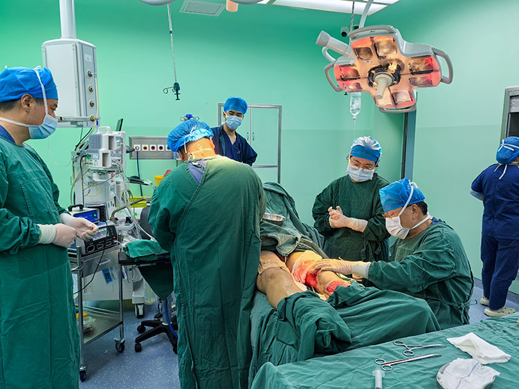 11月11日,北京榮祥再生醫(yī)學(xué)研究所研究員、《中國燒傷創(chuàng)瘍雜志》常務(wù)編委、燒傷創(chuàng)瘍再生醫(yī)療技術(shù)臨床專家趙瑞慶教授,到長治市人民醫(yī)院會(huì)診手術(shù)創(chuàng)傷患者。長治某洗煤廠裝載機(jī)車禍雙下肢嚴(yán)重碾軋傷患者,經(jīng)過積極的抗感染、創(chuàng)面通過再生醫(yī)療技術(shù)聯(lián)合多技術(shù)處理準(zhǔn)備,達(dá)到手術(shù)要求,趙瑞慶教授會(huì)同當(dāng)?shù)蒯t(yī)務(wù)人員李學(xué)雷主任團(tuán)隊(duì)等,在全麻下行“雙下肢嚴(yán)重皮膚缺損創(chuàng)面修復(fù)手術(shù)”術(shù)中順利,出血不多,病人安返病區(qū)。術(shù)后又制定了嚴(yán)格的治療措施。
