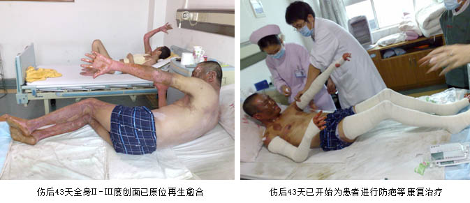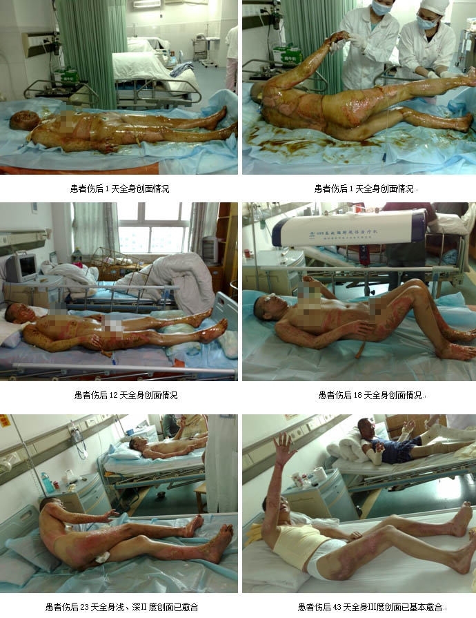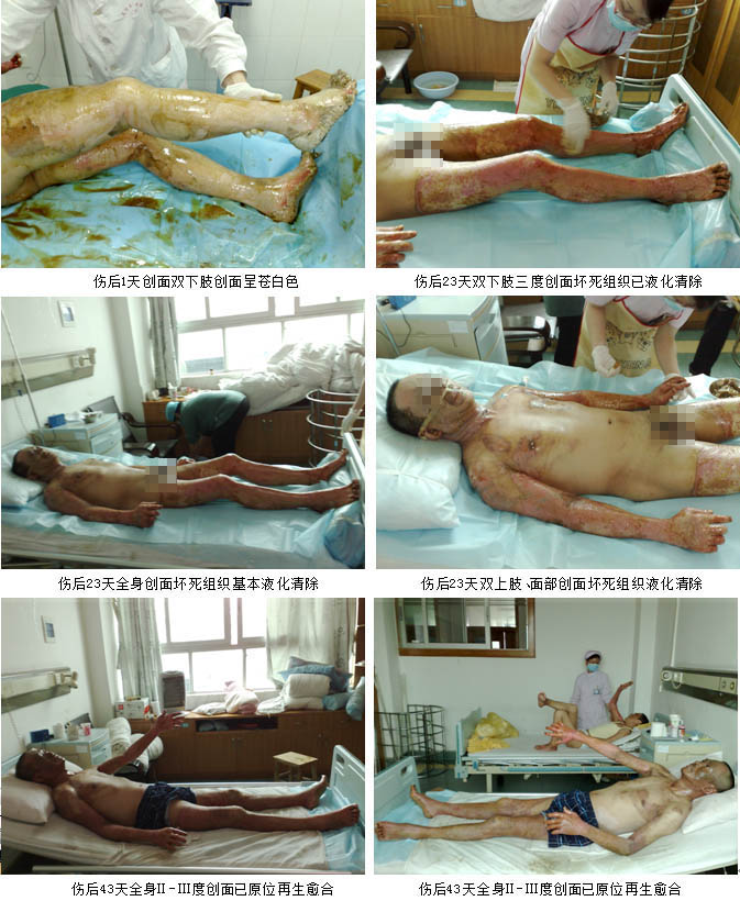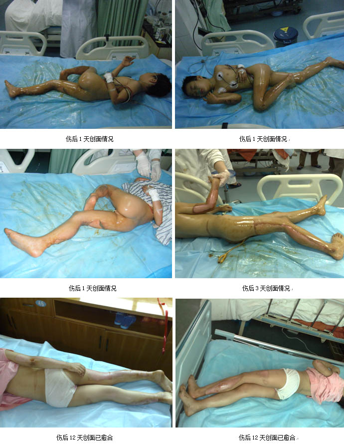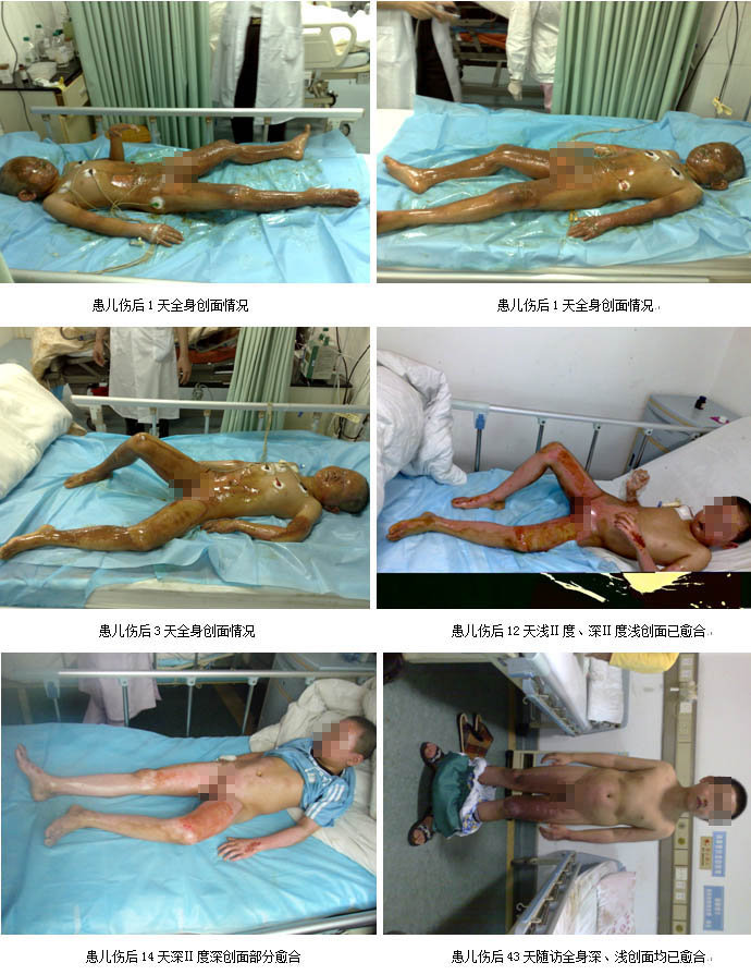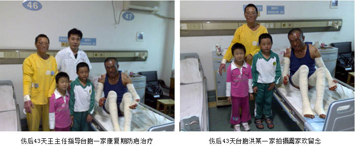 2009年2月26日7時30分,一聲巨響打破了廣州市花都區(qū)某住宅小區(qū)清晨的寧靜,住在該小區(qū)的臺胞洪某家中因煤氣泄漏突發(fā)爆炸,洪某本人以及妻子、兒子和女兒一家四口大面積嚴(yán)重?zé)齻?BR>      傷后一小時,臺胞洪某一家四口先后被急診轉(zhuǎn)入廣州市中西醫(yī)結(jié)合醫(yī)院ICU病房救治。入院診斷:患者洪某為大面積深度燒傷合并爆震傷生命垂危、兒子為大面積燒傷病情危重、妻子金某為重度燒傷、女兒為中度燒傷。該批患者入住ICU病房后,ICU的醫(yī)護人員立即為每位患者建立了有效的靜脈輸液通道,快速靜滴平衡鹽溶液,進(jìn)行有效的容量復(fù)蘇抗休克等生命支持措施,創(chuàng)面處理采用目前處于國際領(lǐng)先水平的,由我國著名生命科學(xué)家徐榮祥教授發(fā)明的燒傷皮膚原位再生復(fù)原技術(shù)。為確保對這批臺胞大面積嚴(yán)重?zé)齻颊叩某晒戎?,該院于收治病人的?dāng)日上午成立了以主管副院長劉樹華副主任醫(yī)師為組長,大外科主任張向東副主任醫(yī)師為副組長,燒傷外科、ICU等相關(guān)科室專家組成的搶救小組,負(fù)責(zé)這一家四口臺胞的救治工作。另外為了確保救治的成功,劉樹華副院長立即與中國中西醫(yī)結(jié)合學(xué)會燒傷專委會常委、北京燒傷創(chuàng)瘍研究所副所長、臨床部主任王洪生研究員電話聯(lián)系,請求其親臨該院指導(dǎo)該批臺胞的救治工作。在王洪生主任的全程臨床指導(dǎo)下,經(jīng)過廣州市中西醫(yī)結(jié)合醫(yī)院燒傷外科及全院相關(guān)科室醫(yī)護人員夜以繼日的精心治療,臺胞洪某一家四口順利渡過休克、感染關(guān),受傷最重的洪某也闖過ARDS關(guān),轉(zhuǎn)危為安,淺Ⅱ度、深Ⅱ度、淺Ⅲ度創(chuàng)面已原位再生復(fù)原(愈合)。目前臺胞洪某一家四口已順利康復(fù),洪某及妻子正在廣州市中西醫(yī)結(jié)合醫(yī)院燒傷外科進(jìn)行康復(fù)期防疤治療,兒子及女兒已正常到學(xué)校上課。臺胞洪某和其單位領(lǐng)導(dǎo)都感慨的說,全家因煤氣爆炸燒傷險些家破人亡是不幸的,但全家又受益于燒傷皮膚原位再生復(fù)原技術(shù)而轉(zhuǎn)危為安,目前闔家歡樂,真是不幸中的萬幸。