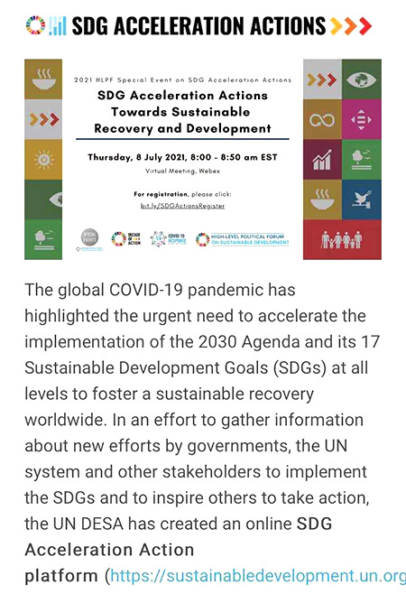 全球新冠肺炎疫情仍然十分嚴(yán)重,迫切需要加速行動全面實現(xiàn)《2030年可持續(xù)發(fā)展議程》及17個可持續(xù)發(fā)展目標(biāo),以促進(jìn)世界可持續(xù)復(fù)蘇。為了解聯(lián)合國和其他相關(guān)組織以及各國政府在履行可持續(xù)發(fā)展目標(biāo)和鼓勵采取行動方面的信息,聯(lián)合國經(jīng)濟和社會理事會創(chuàng)建了在線可持續(xù)發(fā)展目標(biāo)加速行動平臺。美寶國際提出的在中東和北非地區(qū)開展的MEBT培訓(xùn)項目倡議(即聯(lián)合國36733倡議)亦被納入聯(lián)合國可持續(xù)發(fā)展目標(biāo)加速行動平臺,高效踐行,以充分發(fā)揮該項目在新冠肺炎疫情期間對中東和北非地區(qū)的重要意義。