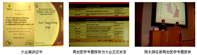 2011年5月3日至5日,第三屆沙特阿拉伯(沙特)國(guó)際燒傷整形大會(huì)在沙特第二大城市Jeddah市的阿卜杜拉國(guó)王大學(xué)醫(yī)學(xué)研究中心的會(huì)議中心成功召開,來自英國(guó)、法國(guó)、德國(guó)、意大利、希臘、土耳其、埃及、黎巴嫩、阿聯(lián)酋、卡塔爾和沙特的120多名燒傷整形專家和代表參加了本次大會(huì),中國(guó)燒傷創(chuàng)瘍科技中心臨床部陳永翀主任應(yīng)邀參加了本次會(huì)議并在大會(huì)上作再生醫(yī)學(xué)專題學(xué)術(shù)報(bào)告。