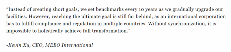 美寶集團董事局主席徐鵬受邀發(fā)表見解,他表示,企業(yè)不應僅設定短期目標,而是應每十年設立一次基準,逐步升級設施,進一步推進可持續(xù)發(fā)展。然而,作為一家國際公司,面對多國不同的法規(guī)與監(jiān)管要求,實現(xiàn)全面轉(zhuǎn)型仍面臨挑戰(zhàn)。徐鵬強調(diào),沒有同步協(xié)調(diào),就無法整體實現(xiàn)全面轉(zhuǎn)型。