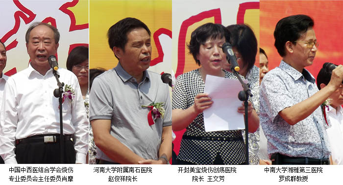 繽紛絢麗的禮炮、歡快祥和的音樂,喜氣洋洋的熱鬧氣氛,點綴出一個吉祥熱烈的初夏盛典現(xiàn)場,開封市政協(xié)副主席蔣忠仆、開封市人大科教文衛(wèi)主任王金榮、開封市人民政府副秘書長張宛紅、開封市衛(wèi)生局副局長呼新偉、開封空分集團公司副總經(jīng)理劉威、美寶國際集團總裁楊智斌等領導出席典禮并講話。參加典禮儀式的還有來自中國中西醫(yī)結合學會燒傷專業(yè)委員會主任委員肖摩教授、河南大學附屬南石醫(yī)院院長趙俊祥教授、河南煤化永煤集團總醫(yī)院田宗皎院長、中南大學湘雅第三附屬醫(yī)院燒傷科主任博士生導師羅成群教授,開封市第一人民醫(yī)院李華強副院長到會并參加了剪彩儀式,來自開封空分集團等企業(yè)界、各級醫(yī)院同仁、河南省電視臺、開封電視臺、開封日報、卞京晚報等媒體記者朋友200余人歡聚一堂,共同見證了這一美好的歷史時刻。
