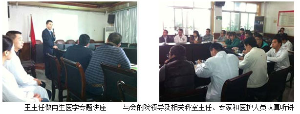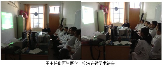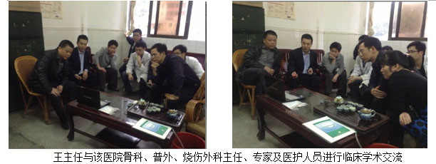 學(xué)術(shù)講座于當(dāng)日下午下午4:00在該醫(yī)院的外科主任辦公室召開。該醫(yī)院的骨外科何平主任、普外科劉主任及其醫(yī)院各外科系統(tǒng)負(fù)責(zé)人及醫(yī)護(hù)人員10余人參加了講座會(huì)議。會(huì)中,王主任結(jié)合了大量的臨床病例圖片,主要針對燒傷、糖尿病足、褥瘡等各類難愈性創(chuàng)傷、潰瘍創(chuàng)面的規(guī)范化處理方法與技巧、注意事項(xiàng)等進(jìn)行了細(xì)致地講解。會(huì)議持續(xù)到下午近六點(diǎn),何主任表示再生療法在臨床上相對于他們來說,是一個(gè)全新的治療方法,他們都感到非常的信服,希望王主任以后再臨床上能多多的指導(dǎo),以更好的造福于患者。