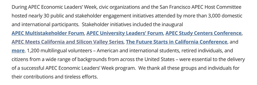 在2023年APEC會(huì)議期間,美國(guó)政府揭曉的年度APEC成果亮點(diǎn)中,APEC硅谷論壇赫然在列,作為一項(xiàng)舉足輕重的成就被特別提及。APEC2024硅谷峰會(huì)作為APEC2024“APEC為人民”框架下的一項(xiàng)重要官方活動(dòng),將于當(dāng)?shù)貢r(shí)間11月9日在秘魯首都利馬舉行,此次峰會(huì)由灣區(qū)委員會(huì)與美寶國(guó)際聯(lián)手舉辦。作為連續(xù)兩屆APEC峰會(huì)的重要戰(zhàn)略合作伙伴,美寶國(guó)際一直致力于推動(dòng)亞太地區(qū)的科技合作與發(fā)展。峰會(huì)上,與會(huì)者將共同探討如何通過科技創(chuàng)新應(yīng)對(duì)全球性挑戰(zhàn),推動(dòng)可持續(xù)發(fā)展。