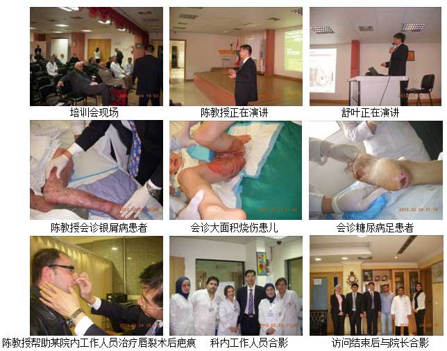 3. 2月24日9點(diǎn),受到DAR AL-AMAL UNIVERSITY HOSPITAL醫(yī)院的邀請,美寶團(tuán)隊(duì)趕到距離貝魯特2個(gè)小時(shí)車程的貝爾貝克市進(jìn)行產(chǎn)品推廣。該醫(yī)院是一所私立大學(xué)附屬醫(yī)院。在為20余名該院各科高年資醫(yī)師做完再生醫(yī)學(xué)技術(shù)和產(chǎn)品介紹后,陳永翀教授在整形科主任的陪同下為三例患者進(jìn)行了會診。第一位是老年銀屑病患者并發(fā)潰瘍伴全身多器官功能障礙;第二位是一個(gè)8歲學(xué)齡期兒童,三度大面積燒傷患者;第三位是老年糖尿病潰瘍患者。在看完病例之后,陳教授給予一一解答,再生醫(yī)療技術(shù)可以解決上述全部問題,只要進(jìn)行規(guī)范的創(chuàng)面處理并進(jìn)行合理的系統(tǒng)治療,所有病人的創(chuàng)面都可以最快速度的愈合。他同時(shí)建議銀屑病患者脫角質(zhì)創(chuàng)面可以嘗試使用美寶疤痕平軟膏,將會得到意想不到的效果;大面積燒傷患兒要及時(shí)清除液化壞死組織;糖尿病患者要積極控制血糖水平。