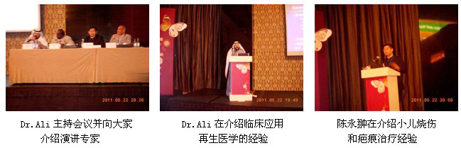 再生醫(yī)學(xué)專(zhuān)題會(huì)議由阿聯(lián)酋燒傷整形外科學(xué)會(huì)主席Dr. Ali Numanry主持,在簡(jiǎn)短的開(kāi)幕式上Dr.Ali向大家介紹了各位演講專(zhuān)家,然后馬上進(jìn)入學(xué)術(shù)報(bào)告和交流議程。首先,Dr. Ali以“MEBT/MEBO---Burns Regenerative Therapy”(MEBT/MEBO---燒傷再生療法)為題,向大家介紹了他學(xué)習(xí)、應(yīng)用,再學(xué)習(xí)、應(yīng)用再生醫(yī)學(xué)的過(guò)程和體會(huì):原來(lái)他一直都認(rèn)為MEBO只是一個(gè)產(chǎn)品,只是應(yīng)用MEBO治療一些小面積淺度燒傷。不過(guò),自從去年陳永翀教授安排他到北京見(jiàn)了徐教授,聽(tīng)了徐教授的一番話后,尤其是到山東泰山醫(yī)學(xué)院的實(shí)地參觀、考察和交流后,心里豁然開(kāi)朗,明白了再生醫(yī)學(xué)不僅僅是MEBO一個(gè)產(chǎn)品那么簡(jiǎn)單,而是一整套全新的醫(yī)學(xué)體系?;氐降习莺笏匦掳凑赵偕t(yī)學(xué)的理論和技術(shù)規(guī)范要求治療患者,實(shí)現(xiàn)了中等面積深度燒傷的皮膚原位再生復(fù)原,并向大家展示了眾多的臨床實(shí)例,很具說(shuō)服力。緊接著,陳永翀應(yīng)邀以:(1)、“A Retrospective Contrast Study of the Clinical Effects in Treating Pediatric Large Area and Deep Burns”;(2)、“Non-invasive Therapy in Scar Treatment----MEBO Scar Ointment”(“小兒大面積深度燒傷臨床治療效果的對(duì)照研究”和“疤痕的非侵入性療法---MEBO疤痕軟膏”)這2個(gè)題目為題,向各位臨床專(zhuān)家對(duì)照性的介紹了:(1)、再生醫(yī)學(xué)在治療小兒大面積深度燒傷的優(yōu)勢(shì)和臨床實(shí)用性;(2)、MEBO疤痕軟膏的細(xì)胞、組織調(diào)控再生機(jī)理和具體的臨床使用方法。演講內(nèi)容詳實(shí)、方法具體明了,受到歡迎。
