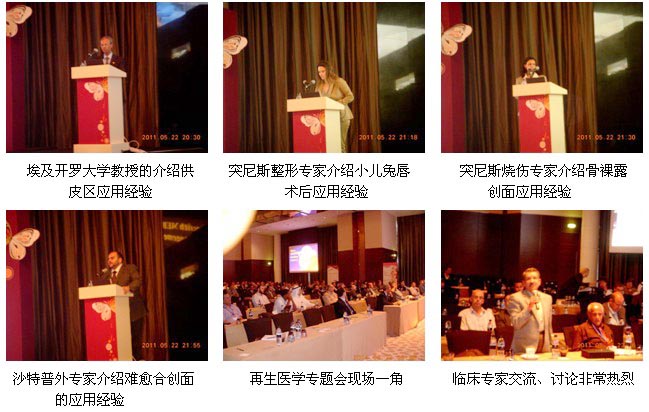 隨后,來(lái)自埃及、突尼斯、沙特、蘇丹的另外8個(gè)臨床專(zhuān)家和教授先后上臺(tái)演講,介紹他們近年來(lái),特別是近3年來(lái)在中國(guó)專(zhuān)家的指導(dǎo)下應(yīng)用再生醫(yī)學(xué)治療燒傷、創(chuàng)傷、潰瘍、供皮區(qū)創(chuàng)面、骨裸露創(chuàng)面、外科感染創(chuàng)面、各科難愈合創(chuàng)面、頜面外科術(shù)后不愈合創(chuàng)面等,應(yīng)用再生醫(yī)學(xué)技術(shù)所取得的神奇臨床效果和經(jīng)驗(yàn)。會(huì)場(chǎng)內(nèi)提問(wèn)、討論和請(qǐng)教非常踴躍,整個(gè)會(huì)場(chǎng)的學(xué)術(shù)氛圍進(jìn)入到了高潮! 原計(jì)劃2小時(shí)的再生醫(yī)學(xué)專(zhuān)題會(huì)在不知不覺(jué)中延長(zhǎng)到了3小時(shí),但是依然還有許多專(zhuān)家意猶未盡,繼續(xù)留在會(huì)場(chǎng)相互交流和討論直到傍晚近7點(diǎn)鐘才離開(kāi)。