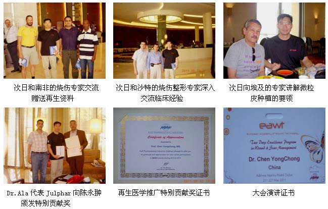這次大會(huì)的最大亮點(diǎn)是MEBO和再生醫(yī)學(xué)。另外,這次大會(huì)和去年的會(huì)議相比也發(fā)生了明顯的變化:1、來(lái)自歐洲的Speaker較上次減少了(由去年的10名減少到5位),再生醫(yī)學(xué)的演講專(zhuān)家增加了(由去年的5名增加到了10名);2、再生醫(yī)學(xué)專(zhuān)題研討會(huì)的時(shí)間由去年的1小時(shí)增加到2小時(shí)(實(shí)際上是3h);3、原計(jì)劃只安排來(lái)自中國(guó)的陳永翀教授2場(chǎng)演講增加到了3場(chǎng);4、這次再生醫(yī)學(xué)與傳統(tǒng)西醫(yī)學(xué)在燒傷、創(chuàng)傷和疤痕治療領(lǐng)域的同臺(tái)競(jìng)技,再生醫(yī)學(xué)不管是在干細(xì)胞的研究與應(yīng)用,燒傷、創(chuàng)傷、潰瘍和疤痕的治療等都明顯勝出!再生醫(yī)學(xué)的學(xué)術(shù)地位、受認(rèn)可程度和被歡迎的程度大為提升;5、歐洲的專(zhuān)家開(kāi)始關(guān)注再生醫(yī)學(xué),并主動(dòng)要求引進(jìn)該技術(shù)和做臨床研究等。應(yīng)該說(shuō)這是一次非常具有里程碑意義的國(guó)際學(xué)術(shù)大會(huì)。我們可以預(yù)測(cè):在明年或不久的將來(lái),下一屆的迪拜國(guó)際創(chuàng)傷與疤痕治療大會(huì)將完全變成再生醫(yī)學(xué)的學(xué)術(shù)大會(huì)!