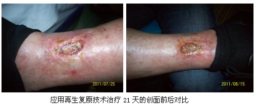 藥治療?;颊咴谶B云港市中醫(yī)院燒傷科接受過陸敏康主任的會(huì)診。8月15日~17日,杜福勤主任再次為其會(huì)診,該患經(jīng)1個(gè)月再生復(fù)原醫(yī)療技術(shù)的治療其創(chuàng)面已有明顯好轉(zhuǎn)。