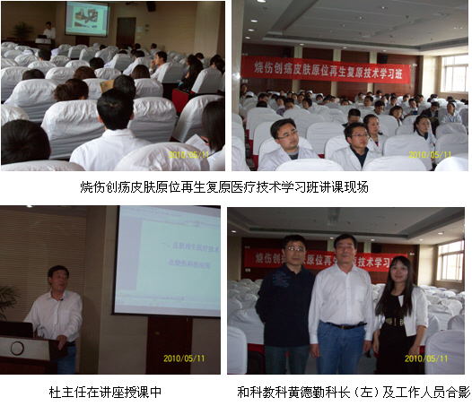 應(yīng)江蘇省建湖縣人民醫(yī)院陳云琦院長的邀請,中國中西醫(yī)結(jié)合學會燒傷專業(yè)委員會常委、北京美寶燒傷創(chuàng)瘍研究所臨床部杜福勤主任和學會駐蘇北區(qū)劉恒主任于2010年5月11日下午15:00點在建湖縣人民醫(yī)院會議室舉行再生復(fù)原科學醫(yī)療技術(shù)學術(shù)講座。講座由醫(yī)院科教科黃德勤科長主持,參加會議的有該院外科、內(nèi)科、骨科、肛腸科、婦科、皮膚科、內(nèi)分泌科、耳鼻喉科等科室的主任和醫(yī)師護士,共計70余人。