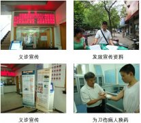 中國中西醫(yī)結(jié)合學(xué)會(huì)燒傷專業(yè)委員會(huì)常委、北京燒傷創(chuàng)瘍研究所臨床醫(yī)療部金黨軍教授應(yīng)湖南長沙望月湖社區(qū)衛(wèi)生服務(wù)中心盛邀,于2009年6月28日—30日在望月湖社區(qū)服務(wù)中心進(jìn)行義診活動(dòng)。湖南辦事處望美玲和方昆鵬發(fā)放了宣傳資料,對家中有各種潰瘍和皮膚損傷的患者可前來就診,把再生醫(yī)療技術(shù)更好更快的普及到基層惠及到廣大群眾。
