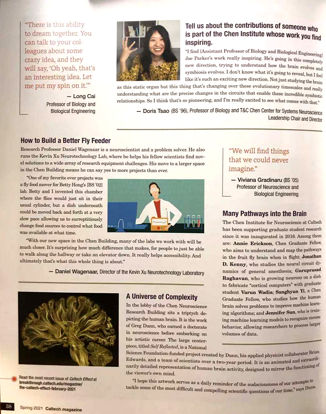 日前,加州理工(Caltech)春季校刊發(fā)表 “構(gòu)建神經(jīng)網(wǎng)絡(luò)”一文,特別介紹了加州理工大學徐鵬神經(jīng)科技中心。