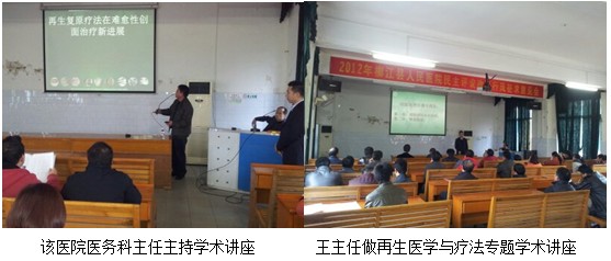 2012年12月7日,王主任應(yīng)邀到廣西百色凌云縣中醫(yī)院進(jìn)行 “再生療法在難愈性創(chuàng)瘍創(chuàng)面治療新進(jìn)展”專(zhuān)題臨床學(xué)術(shù)講座。該醫(yī)院成立于1991年5月,其前身是民辦醫(yī)院即泗城鎮(zhèn)衛(wèi)生院,座落在凌云縣城東——鄧小平足跡之旅風(fēng)景區(qū)獨(dú)秀峰腳下,是一所集醫(yī)療、預(yù)防、保健、康復(fù)、科研為一體的綜合性中醫(yī)院,是城鎮(zhèn)職工基本醫(yī)療保險(xiǎn)和人壽醫(yī)療保險(xiǎn)定點(diǎn)醫(yī)院之一。 醫(yī)院占地面積1780平方米,業(yè)務(wù)用房建筑面積1238平方米,現(xiàn)有職工56人,衛(wèi)技人51人,中級(jí)以上職稱(chēng)人員占50%。住院病床65張,分內(nèi)兒、婦產(chǎn)、骨外科三個(gè)病區(qū)。擁有進(jìn)口自動(dòng)血細(xì)胞分析儀,半自動(dòng)生化分析儀、尿分析儀、表迪遜B超、200毫安X光機(jī)、多功能麻醉吸呼機(jī)、心電圖機(jī)、心電監(jiān)護(hù)儀等先進(jìn)醫(yī)療設(shè)備,為醫(yī)療、科研提供了較好的工作條件。學(xué)術(shù)講座于當(dāng)天晚上7:30在醫(yī)院會(huì)議室舉行,全院各科室主任和醫(yī)護(hù)人員共30余人到會(huì)聆聽(tīng)王主任的專(zhuān)題講座。該醫(yī)院醫(yī)務(wù)科科長(zhǎng)黃澤全程主持了會(huì)議。在講座中王主任結(jié)合了大量的臨床病例圖片及錄像資料,主要針對(duì)深度燒傷及各類(lèi)難愈性創(chuàng)傷、潰瘍創(chuàng)面、糖尿病足、放射性潰瘍的規(guī)范化處理方法與技巧、注意事項(xiàng)等進(jìn)行了細(xì)致講解,強(qiáng)調(diào)創(chuàng)面處理要大膽清創(chuàng)、減壓、去除壞死組織,并保持創(chuàng)面生理的濕潤(rùn)環(huán)境,實(shí)現(xiàn)創(chuàng)面的再生復(fù)原。會(huì)后,與會(huì)的醫(yī)護(hù)人員都被再生療法在創(chuàng)面上的全新治療方案所折服。