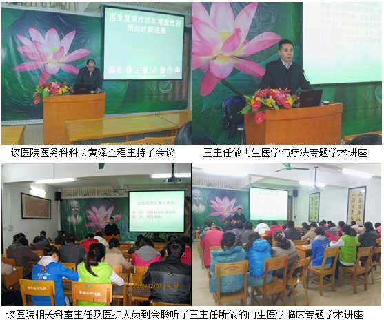 2012年12月6日,王主任應(yīng)邀到廣西水電醫(yī)院進(jìn)行 “再生療法在燒傷、難愈性創(chuàng)瘍創(chuàng)面治療新進(jìn)展”專(zhuān)題臨床學(xué)術(shù)講座。該醫(yī)院原稱(chēng)廣西水電工程局職工醫(yī)院,是隸屬于廣西水電工程局的一所企業(yè)辦綜合醫(yī)院,創(chuàng)建于1958年的春天(廣西橫縣西津電站)。四十多年來(lái),它隨著廣西水電的建設(shè)發(fā)展,輾轉(zhuǎn)奔波于廣西各個(gè)水電施工工地上。1975年建設(shè)大化電站時(shí),定址大化至今。醫(yī)院占地面積25畝 ,建筑面積 11351平方米 。床位定編145張。有職工155人,衛(wèi)技人員118人,其中副高級(jí)職稱(chēng)8人,中級(jí)職稱(chēng)56人。