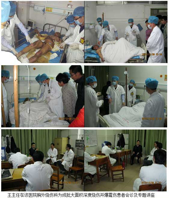 2012年12月8日早上,廣西貴港市平南縣人民醫(yī)院急診收治一批因大型氣罐爆炸致大面積深度燒沖復(fù)合傷(燒傷并爆震傷)患者,當(dāng)日上午該醫(yī)院主管副院長(zhǎng)兼胸外燒傷科主任臧德源緊急邀請(qǐng)王主任到該醫(yī)院為成批大面積深度燒傷合并爆震傷患者會(huì)診。該醫(yī)院創(chuàng)建于1935年,是一所集醫(yī)療、科研、教學(xué)、預(yù)防、保健、康復(fù)和社區(qū)衛(wèi)生服務(wù)于一體的綜合性縣(市)級(jí)醫(yī)院,是平南縣醫(yī)療業(yè)務(wù)技術(shù)指導(dǎo)中心,擔(dān)負(fù)著全縣130多萬(wàn)人民的醫(yī)療保健任務(wù)。醫(yī)院設(shè)床位390張,年門(mén)急診量近36萬(wàn)人次,住院病人1.6萬(wàn)人次.現(xiàn)有職工624人,有碩士研究生4人,高級(jí)職稱(chēng)14人,中級(jí)職稱(chēng)221人。