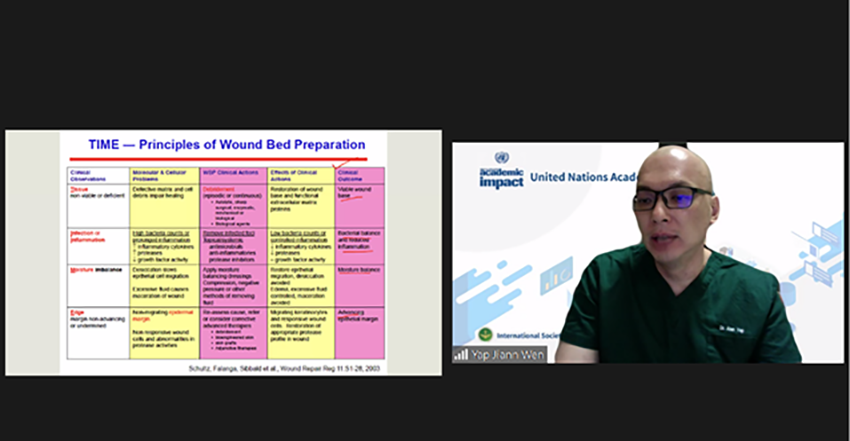 首位演講嘉賓是來(lái)自馬來(lái)西亞的Dr. Yap。Dr. Yap是馬來(lái)西亞創(chuàng)面醫(yī)師協(xié)會(huì)副主席、馬來(lái)西亞Queen Elizabeth醫(yī)院創(chuàng)面科主任。他的演講題目為《創(chuàng)面評(píng)估》,在演講中,他詳細(xì)地介紹了創(chuàng)面的主要評(píng)估指標(biāo)以及創(chuàng)面床的準(zhǔn)備等。