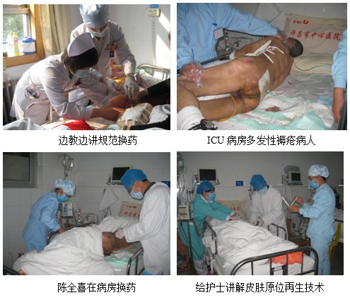 2011年11月7日上午,中國中西醫(yī)結(jié)合學會燒傷專業(yè)委員會委員,北京美寶燒傷創(chuàng)瘍研究所臨床部專家陳全喜受許昌市中心醫(yī)院ICU科主任陳建、內(nèi)分泌科主任刁建華的邀請會診兩位嚴重多發(fā)性壓瘡病人。