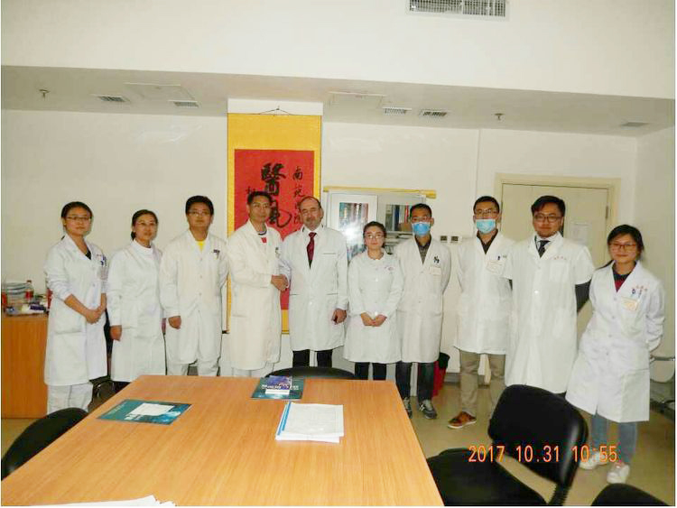 2017年10月31日,烏克蘭的外科專家遠(yuǎn)道而來(lái),至北京南苑醫(yī)院燒傷瘡瘍科參觀考察并交流學(xué)習(xí)燒傷創(chuàng)瘍?cè)偕t(yī)療技術(shù)。該科主任陳永翀帶烏克蘭專家親臨病房,察看患者傷口,詳述換藥過(guò)程,并指導(dǎo)外國(guó)友人親自操作。