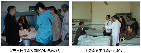應(yīng)四川省多家醫(yī)院的申請(qǐng),四川省中西醫(yī)結(jié)合學(xué)會(huì)燒傷專業(yè)委員會(huì)組織了一次重點(diǎn)關(guān)于疤痕治療的學(xué)術(shù)觀摩活動(dòng)。2011年10月28日,成都大學(xué)附屬醫(yī)院、自貢市第一人民醫(yī)院、自貢市第四人民醫(yī)院及瀘州市石油醫(yī)院等多家單位近20人在學(xué)會(huì)邱衛(wèi)東秘書(shū)的帶領(lǐng)下來(lái)到了阿壩州林業(yè)中心醫(yī)院參觀交流。阿壩州林業(yè)中心醫(yī)院燒傷整形科曾勇主任代表醫(yī)院熱情的接待了大家。他簡(jiǎn)要地介紹了醫(yī)院正在進(jìn)行災(zāi)后重建和科室目前應(yīng)用再生醫(yī)療技術(shù)的情況,并且就燒傷、創(chuàng)瘍、疤痕的治療方法、要點(diǎn)和心得做了介紹,同時(shí)向大家展示了很多治愈患者的照片。接著曾主任帶領(lǐng)大家到病房觀摩,針對(duì)各患者的治療情況和治療方法做了現(xiàn)場(chǎng)介紹,并且就參觀人員提出的疑問(wèn)一一的做了詳細(xì)解答。觀摩結(jié)束后,曾主任在科室辦公室結(jié)合患者治療情況詳細(xì)向大家介紹了自己使用再生醫(yī)療技術(shù)的心得,同時(shí)還將科室新引進(jìn)的疤痕導(dǎo)入儀向大家做了展示和介紹,并且安排主管醫(yī)生為大家演示和示范治療操作方法。
