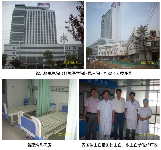 醫(yī)院開放床位800余張,設(shè)置23個病區(qū),33個亞???,5個市級重點、特色學(xué)科。開設(shè)有心內(nèi)科、內(nèi)分泌科、血液科、腎內(nèi)科、呼吸內(nèi)科、消化內(nèi)科、神經(jīng)內(nèi)科、兒科、新生兒科、重癥監(jiān)護(hù)、心胸外科、腫瘤外科、放療科、化療科、泌尿外科、燒傷整形美容科、骨科、肝膽外科、甲乳???、神經(jīng)外科、婦產(chǎn)科、小兒外科、肛腸科、麻醉科、SICU、康復(fù)科、輔助檢查等30多個臨床二、三級??啤?BR>      2011年7月7日~16日,應(yīng)皖北煤電總醫(yī)院燒傷整形科齊國選主任的再次邀請,中國中西醫(yī)結(jié)合學(xué)會燒傷專業(yè)委員會委員、北京美寶燒傷創(chuàng)瘍研究所臨床部主任杜福勤教授應(yīng)邀再次前往該院示范指導(dǎo)治療燒傷創(chuàng)瘍患者。經(jīng)過兩周的示范指導(dǎo)和治療,應(yīng)用再生復(fù)原醫(yī)療技術(shù)治療的患者(燒傷患者7例、燒傷植皮后患者2例、燒傷后創(chuàng)面潰瘍1例),患者最大年齡91歲,最小者9個月。7月14日,安徽省區(qū)張朝軍主任和吳崇巍同志到皖北總院,張朝軍主任和齊國選主任交流了再生復(fù)原技術(shù)和再生產(chǎn)品的引進(jìn)與技術(shù)協(xié)作以及下一步舉辦再生技術(shù)講座等有關(guān)事宜。