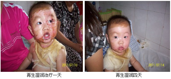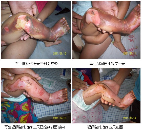 例4  患兒   王某某   9個月 右下肢燙傷七天