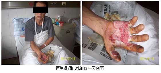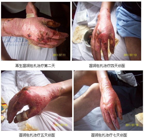 例6   右手電弧燒傷一天入院應(yīng)用再生技術(shù)治療