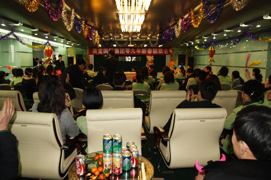 2009年1月19日下午,美寶國際集團2009年新春聯(lián)歡會在北京總部多功能廳成功舉辦。在歡樂祥和的氣氛中,美寶國際集團駐北京的人員齊聚總部多功能廳,俱樂部人員的時裝表演拉開了聯(lián)歡會的序幕,美輪美奐的模特與時裝讓人眼睛一亮;國際部的獨唱震驚全場,引來一片驚呼。各種小游戲連連不斷,換來一陣接一陣的笑聲;充滿感情的詩朗誦讓大家沉浸在對未來的憧憬之中;俱樂部的古裝小品用滑稽地化妝和詼諧的詞語引爆聯(lián)歡會全場的笑聲;聯(lián)歡會高潮迭起,最后美寶集團董事局主席徐榮祥教授上臺表演節(jié)目時說: