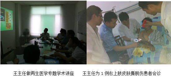 2012年9月26日下午三點(diǎn),應(yīng)該院外科文振偉主任的邀請,中國中西醫(yī)結(jié)合學(xué)會(huì)燒傷專業(yè)委員會(huì)常委兼秘書、《中國燒傷創(chuàng)瘍雜志》副總編輯、北京美寶燒傷創(chuàng)瘍研究所副所長、第二臨床研究部主任王洪生研究員來到該院到該科作學(xué)術(shù)和技術(shù)上的交流和指導(dǎo),參會(huì)人員為該科室全體醫(yī)護(hù)人員共10余人。會(huì)議在該院外科室舉行, 王主任通過大量典型的臨床病例圖片及錄像資料詳細(xì)的介紹了再生醫(yī)療技術(shù)對深度燒傷及難愈性創(chuàng)面作用機(jī)理、再生復(fù)原療法對各種不同深度燒傷及各種難愈性創(chuàng)面治療方法和規(guī)范操作時(shí)的注意事項(xiàng)等,在授課過程之中大家認(rèn)真聽講,并在授課后大家對王主任講課內(nèi)容進(jìn)行了深入的探討,王主任根據(jù)大家提出的問題有針對性的進(jìn)行了講解,會(huì)后王主任對該科一例右上肢撕脫傷病人進(jìn)行會(huì)診,王主任還親自為病人換藥,進(jìn)行了現(xiàn)場的生動(dòng)有效的臨床指導(dǎo)示范。