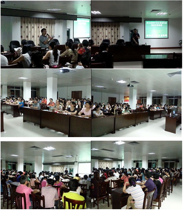 2013年3月25號,應(yīng)扶綏縣人民醫(yī)院副院長李海華邀請,中國中西醫(yī)結(jié)合學(xué)會燒傷專業(yè)委員會常委兼秘書、《中國燒傷創(chuàng)瘍雜志》副總編輯、北京燒傷創(chuàng)瘍研究所副所長、臨床部主任王洪生研究員到該院進行 “再生療法在難愈性創(chuàng)瘍創(chuàng)面治療新進展”專題臨床學(xué)術(shù)講座。晚上七點,在醫(yī)院會議室,全院各科室主管和醫(yī)護人員共130余人到會聆聽王主任的專題講座。該醫(yī)院副院長李海華全程主持了會議。王主任的專題學(xué)術(shù)報告分為三部分,在第一部分概述中,王主任重點講述了我國著名生命科學(xué)家、醫(yī)學(xué)家徐榮祥教授近年來在人體再生復(fù)原科學(xué)研究領(lǐng)域所取得的重大臨床及實驗研究成果,2012年分別發(fā)表在《英國外科雜志》和《國際燒傷雜志》兩篇綜述中有關(guān)磺胺嘧啶銀及含銀敷料等外用銀制劑用于急性創(chuàng)傷和燒傷創(chuàng)面會造成創(chuàng)面愈合延遲、增加疼痛和感染率的最新觀點,以及再生復(fù)原療法的概念及其解決難愈性創(chuàng)面治療的機理;第二部分重點介紹了再生復(fù)原療法創(chuàng)面規(guī)范的處理方法 ;第三部分重點講述了再生復(fù)原療法在各類難愈性創(chuàng)瘍創(chuàng)面治療要點及典型病例介紹,并結(jié)合大量的病例圖片講解了各類深度燒傷創(chuàng)面、再生醫(yī)療技術(shù)在骨外露、鋼板外露、糖尿病足、動脈閉塞癥、撕脫傷、斷肢再生、手術(shù)切口感染、褥瘡等各種難愈合創(chuàng)面的治療過程及要點。講座結(jié)束前是王主任解答醫(yī)護人員的提問,提問延續(xù)到了10:30分,仍然有許多醫(yī)護人員要提問,氣氛非常熱烈,最后因王主任需為該醫(yī)院普外科及骨科收治的難愈性創(chuàng)面患者會診,學(xué)術(shù)講座才結(jié)束。講課結(jié)束后,王主任在該醫(yī)院主管副院長李海華及醫(yī)務(wù)科長、普外科主任及骨科主任等領(lǐng)導(dǎo)專家陪同下,先后深入該醫(yī)院普外科為一例肛瘺合并陰囊潰瘍患者、一例背部因皮脂腺囊腫切除術(shù)后感染后慢性潰瘍患者及到骨科病房為一例骶尾部4期巨大潰瘍性褥瘡患者等難愈性創(chuàng)面患者進行了會診及臨床指導(dǎo)。時間一直延續(xù)到11點,由于時間已晚,加上王主任還要趕兩百多公里的路程到龍州縣,所以李副院長和醫(yī)生們懷著歉意與不舍送王主任上車。李副院長希望王主任再到廣西時,一定要再來扶綏。