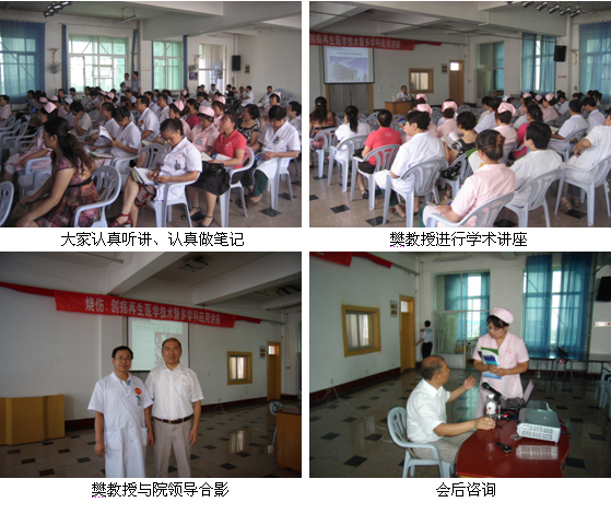樊教授首先來(lái)到該院的病房對(duì)燒傷患者進(jìn)行了會(huì)診,并結(jié)合典型病例與該院燒傷科的醫(yī)生們進(jìn)行了技術(shù)交流。下午二點(diǎn)半,學(xué)術(shù)講座在該院的會(huì)議室正式開(kāi)始,會(huì)議由該院院長(zhǎng)李啟主持,參加的有全院所有科室的醫(yī)務(wù)人員,約100余人。樊教授以“再生復(fù)原科學(xué)理論與實(shí)踐”為題進(jìn)行了講座,他首先講述了應(yīng)用再生醫(yī)療技術(shù)治療燒傷的規(guī)范以及注意事項(xiàng);針對(duì)基層醫(yī)院在燒傷治療中容易遇到的問(wèn)題做了重點(diǎn)的講解;還向大家介紹了再生醫(yī)療技術(shù)在創(chuàng)瘍疾病的治療以及多學(xué)科的應(yīng)用,當(dāng)樊教授講到再生醫(yī)療技術(shù)在08年汶川大地震中治療的幾個(gè)病例時(shí),引起了與會(huì)人員極大的興趣,大家積極發(fā)言進(jìn)行討論,許多醫(yī)生還結(jié)合自己遇到的臨床病例向樊教授進(jìn)行咨詢(xún)。最后,樊教授結(jié)合多媒體向大家介紹了瘡瘍貼對(duì)各種難以愈合創(chuàng)面的治療的原理及治療效果,再生醫(yī)療技術(shù)治療的神奇效果與樊教授精彩的講課再一次引起了與會(huì)人員的熱烈掌聲。