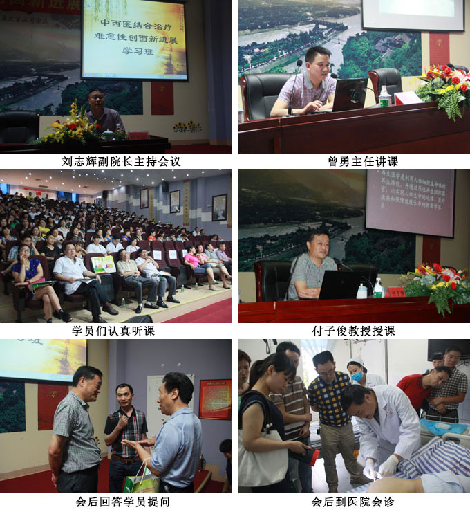 學(xué)習(xí)班舉行了簡(jiǎn)短隆重的開幕式,燒傷創(chuàng)瘍?cè)偕t(yī)學(xué)和療法、國(guó)務(wù)院專家特殊津貼專家、中國(guó)中西醫(yī)結(jié)合學(xué)會(huì)燒傷專業(yè)委員會(huì)副主任委員付子俊教授、中國(guó)中西醫(yī)結(jié)合學(xué)會(huì)燒傷專業(yè)委員會(huì)青年委員曾勇主任、四川省中醫(yī)藥管理局醫(yī)政處李春處長(zhǎng)、四川省學(xué)會(huì)李成林秘書長(zhǎng)、邱衛(wèi)東主任、都江堰市中醫(yī)院劉志輝副院長(zhǎng)等專家、領(lǐng)導(dǎo)就坐主席臺(tái),劉志輝副院長(zhǎng)主持會(huì)議。四川省中醫(yī)藥管理局醫(yī)政處李春處長(zhǎng)講話,她對(duì)燒傷創(chuàng)瘍?cè)偕t(yī)學(xué)和療法近30年來(lái)臨床療效給予高度評(píng)價(jià),希望各級(jí)醫(yī)療機(jī)構(gòu)掌握好這項(xiàng)好學(xué)、好用、經(jīng)濟(jì)、安全和有效的臨床實(shí)用技術(shù),為患者更好服務(wù)。特別值得一提的是都江堰市中醫(yī)院李其林院長(zhǎng)專程從外地趕回參加了此次學(xué)習(xí)班。