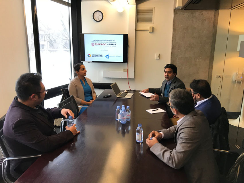 應(yīng)哈里斯學(xué)院院長(zhǎng)Dr. Baicker邀請(qǐng),美寶集團(tuán)總裁徐鵬出席揭牌儀式并與院長(zhǎng)Dr. Katherine Baicker, 合作伙伴哈里斯公共政策學(xué)院國(guó)際創(chuàng)新項(xiàng)目(IIC)的主任Dr. Anup Malani,以及徐鵬智庫(kù)主任Dr. Abhilash Mishra進(jìn)行了智庫(kù)成立的第一次工作會(huì)議,規(guī)劃智庫(kù)的使命和新一年的項(xiàng)目?jī)?nèi)容。