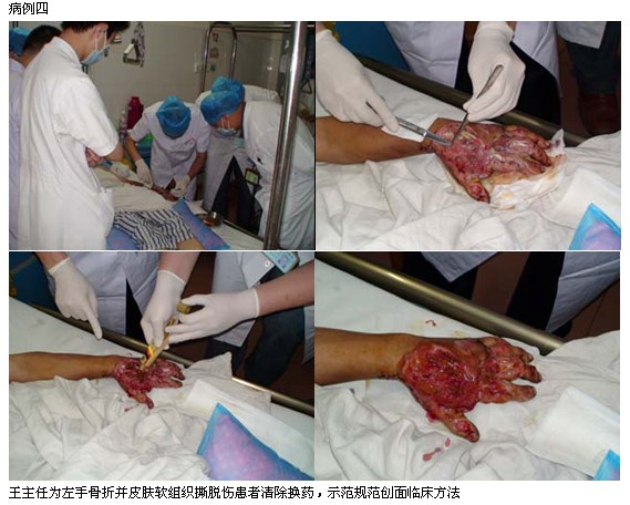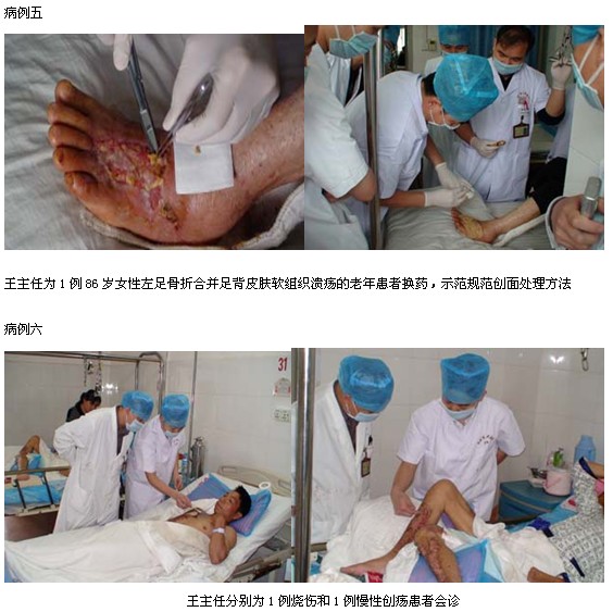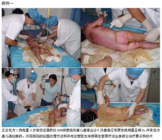 2011年5月6日~5月16日以來(lái),中國(guó)中西醫(yī)結(jié)合學(xué)會(huì)燒傷專(zhuān)業(yè)委員會(huì)常委、中國(guó)燒傷創(chuàng)瘍雜志社副總編輯、北京美寶燒傷創(chuàng)瘍研究所副所長(zhǎng),臨床研究部主任王洪生研究員應(yīng)邀在百忙當(dāng)中晝夜兼程三下廣西來(lái)賓市人民醫(yī)院骨科燒傷整形外科,為在該醫(yī)院骨科、燒傷整形科住院的1例危重小兒大面積深度燒傷及高壓電燒傷并骨科創(chuàng)瘍、糖尿病足等危重患兒及難愈性創(chuàng)面會(huì)診,指導(dǎo)臨床救治工作,并為高壓電燒傷、骨科創(chuàng)瘍、糖尿病足等難愈性創(chuàng)面患者進(jìn)行示范手術(shù),在王主任連續(xù)跟蹤指導(dǎo)下,該醫(yī)院骨科、燒傷整形外科的專(zhuān)家和主管醫(yī)生已基本掌握了應(yīng)用再生復(fù)原療法治療小兒大面積深度燒傷、高壓電燒傷、骨科創(chuàng)瘍、糖尿病足等難愈性創(chuàng)面的臨床規(guī)范的創(chuàng)面處理方法和大面積深度燒傷全身綜合治療技術(shù),至此,該醫(yī)院骨科燒傷整形科已將再生復(fù)原療法全面應(yīng)用于大面積燒傷和各類(lèi)骨科創(chuàng)瘍和糖尿病足等難愈性創(chuàng)面患者的臨床治療中。