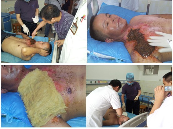 會后,王主任應(yīng)骨科燒傷外科覃少檢主任邀請,為該科住院的一例燒傷患者會診,王主任結(jié)合本病例示范如何規(guī)范應(yīng)用燒傷皮膚原位再生復(fù)原技術(shù),并向他們講解如何判斷燒傷創(chuàng)面有無感染,通過王主任的臨床指導(dǎo),糾正了該科過去在使用該項(xiàng)技術(shù)時(shí)的一些誤區(qū),該科主任、護(hù)士長及醫(yī)護(hù)人員在聆聽了王主任的深入淺出的講解后,表示在以后的臨床工作中,要嚴(yán)格按照規(guī)范的燒傷皮膚原位再生復(fù)原技術(shù)處理創(chuàng)面,以將此技術(shù)更好的造福該縣的廣大患者。