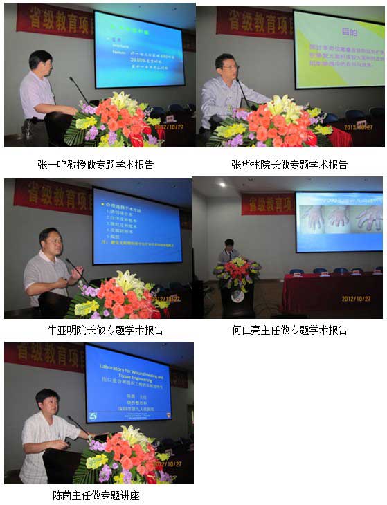 2012年10月27日上午9時(shí),深圳市龍崗中心醫(yī)院學(xué)術(shù)廳,來(lái)自廣東省內(nèi)外的從事燒傷整形外科、骨科、創(chuàng)傷、皮膚外科等相關(guān)專業(yè)的專家及廣東省第一屆中西醫(yī)結(jié)合學(xué)會(huì)燒傷專委會(huì)委員和相關(guān)專業(yè)的醫(yī)護(hù)人員約50余人歡聚一堂,參加2012年省級(jí)繼續(xù)醫(yī)學(xué)教育項(xiàng)目《中西醫(yī)結(jié)合在大面積燒傷救治新進(jìn)展》暨2012年廣東省中西醫(yī)結(jié)合燒傷專委會(huì)學(xué)術(shù)年會(huì)。會(huì)議開(kāi)始并首先舉行了簡(jiǎn)短的開(kāi)幕式,開(kāi)幕式由廣東省中西醫(yī)結(jié)合學(xué)會(huì)燒傷專業(yè)委員會(huì)主任委員蘇順清主任醫(yī)師主持。廣東省中西醫(yī)結(jié)合學(xué)會(huì)金世明秘書長(zhǎng),中國(guó)中西醫(yī)結(jié)合學(xué)會(huì)燒傷專委會(huì)常委兼秘書、《中國(guó)燒傷創(chuàng)瘍雜志》副總編輯、北京美寶燒傷創(chuàng)瘍研究所副所長(zhǎng)、臨床研究部主任王洪生研究員,廣東省中西醫(yī)結(jié)合學(xué)會(huì)理事、國(guó)家中醫(yī)院管理局燒傷重點(diǎn)??平ㄔO(shè)單位學(xué)科帶頭人、廣州市中西醫(yī)結(jié)合醫(yī)院劉樹(shù)華副院長(zhǎng),廣東省中西醫(yī)結(jié)合學(xué)會(huì)理事、惠州市第六人民醫(yī)院陳浩院長(zhǎng);龍崗中心醫(yī)院副院長(zhǎng)袁文彬副院長(zhǎng)及廣東省中西醫(yī)結(jié)合燒傷專委會(huì)副主任應(yīng)邀在主席臺(tái)就坐。袁文彬副院長(zhǎng)代表承辦醫(yī)院致歡迎辭,王洪生主任代表中國(guó)中西醫(yī)結(jié)合學(xué)會(huì)燒傷專委會(huì)向大會(huì)表示祝賀,廣東省中西醫(yī)結(jié)合學(xué)會(huì)金世明秘書長(zhǎng)代表廣東省中西醫(yī)結(jié)合學(xué)會(huì)發(fā)表了熱情洋溢的講話,并向與會(huì)代表表示了親切的慰問(wèn),預(yù)祝大會(huì)圓滿成功。